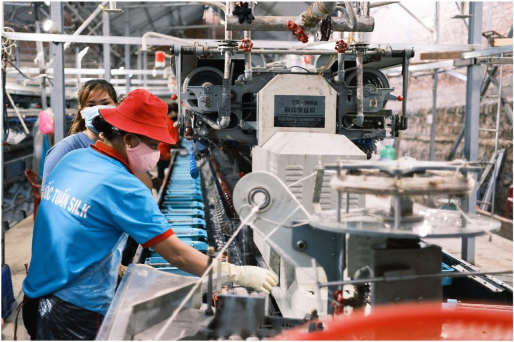 With a production area of up to 1855m2, a warehouse system of 1500m2, and a modern machinery system, the team of skilled workers and craftsmen are thoroughly trained. The silk and cocoon products of Nam Ban Silk are always highly regarded and sought after by international customers from India, China, Taiwan, the Middle East, Europe, and more.